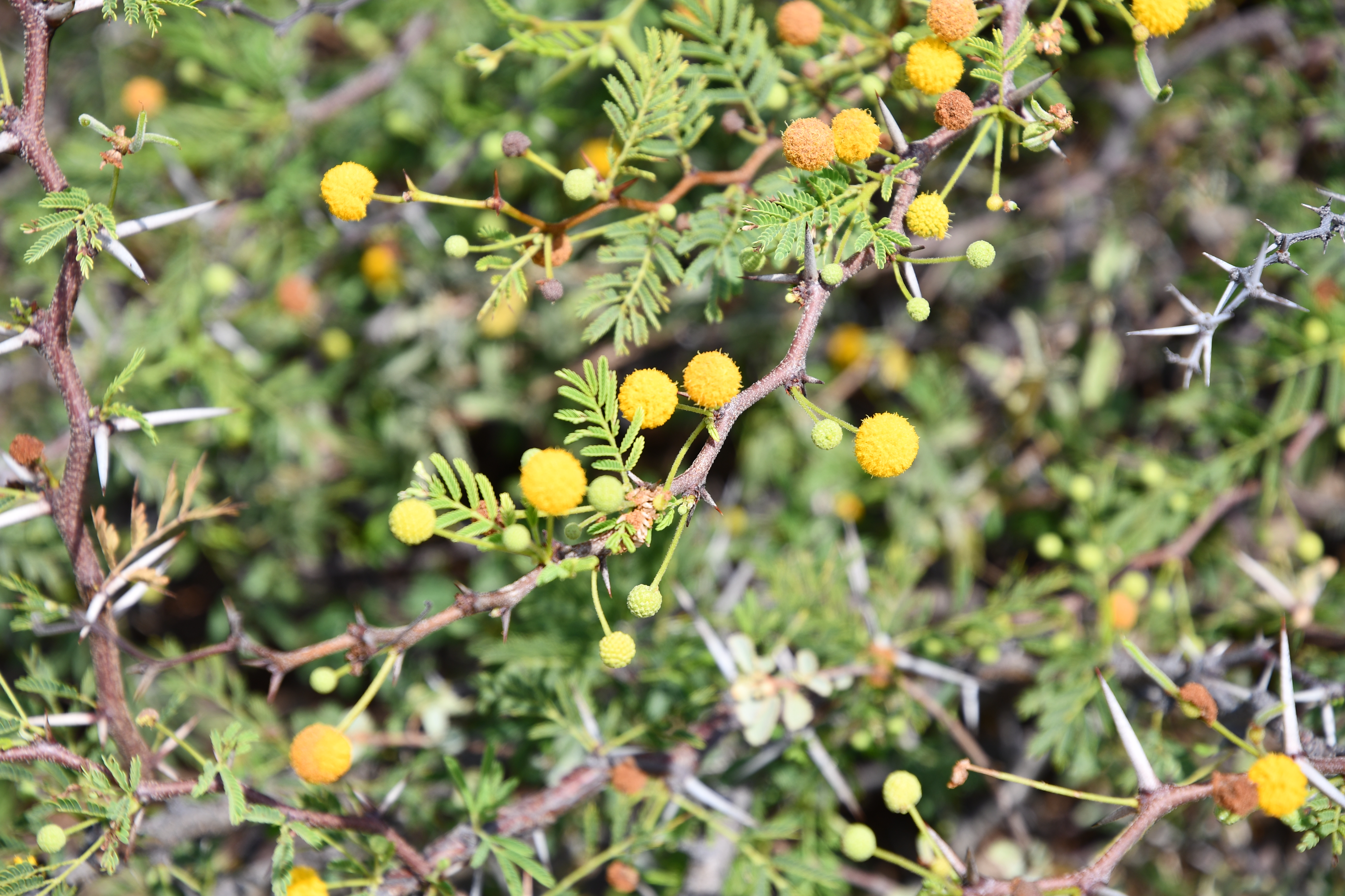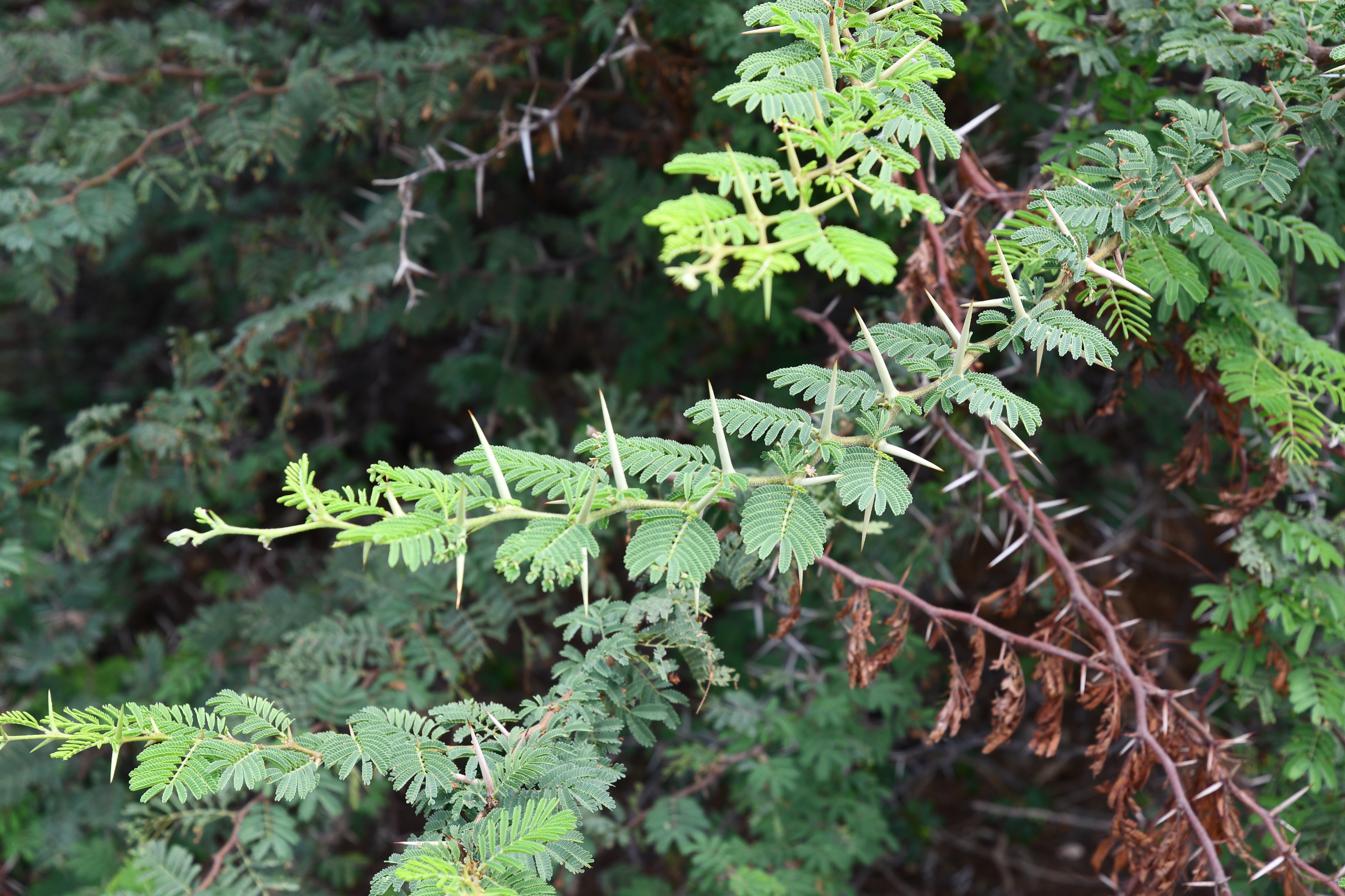 Acacia abyssinica (Afrikaanse plattopboom, blad en doorns)