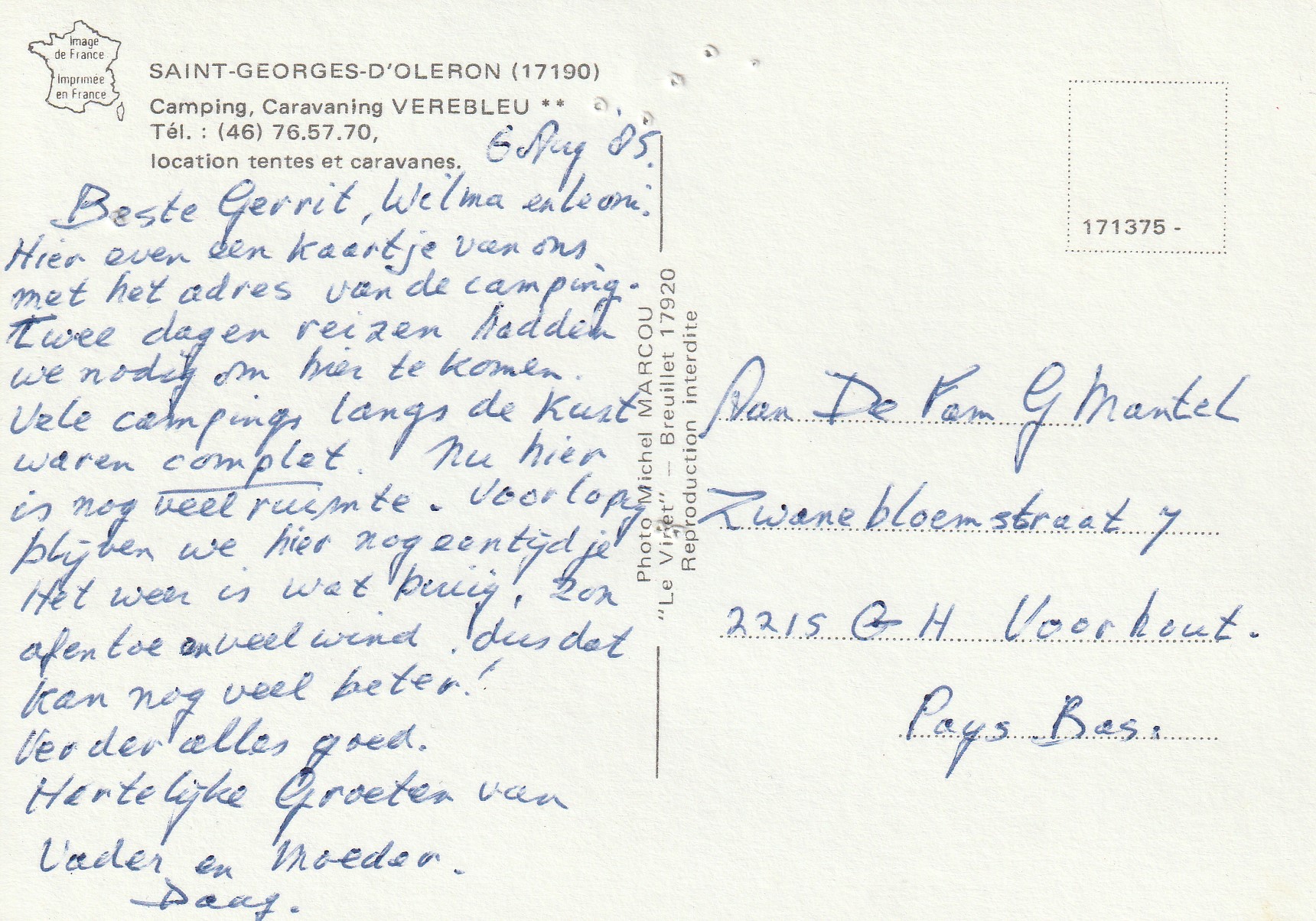 | Aan: | G. Mantel, Zwanebloemstraat, Voorhout |