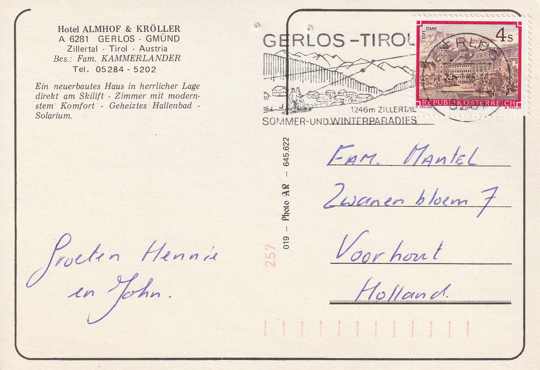 | Aan: | G. Mantel, Zwanebloemstraat, Voorhout |