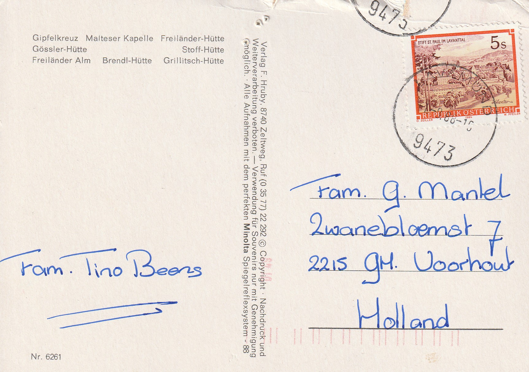 | Aan: | G. Mantel, Zwanebloemstraat, Voorhout |