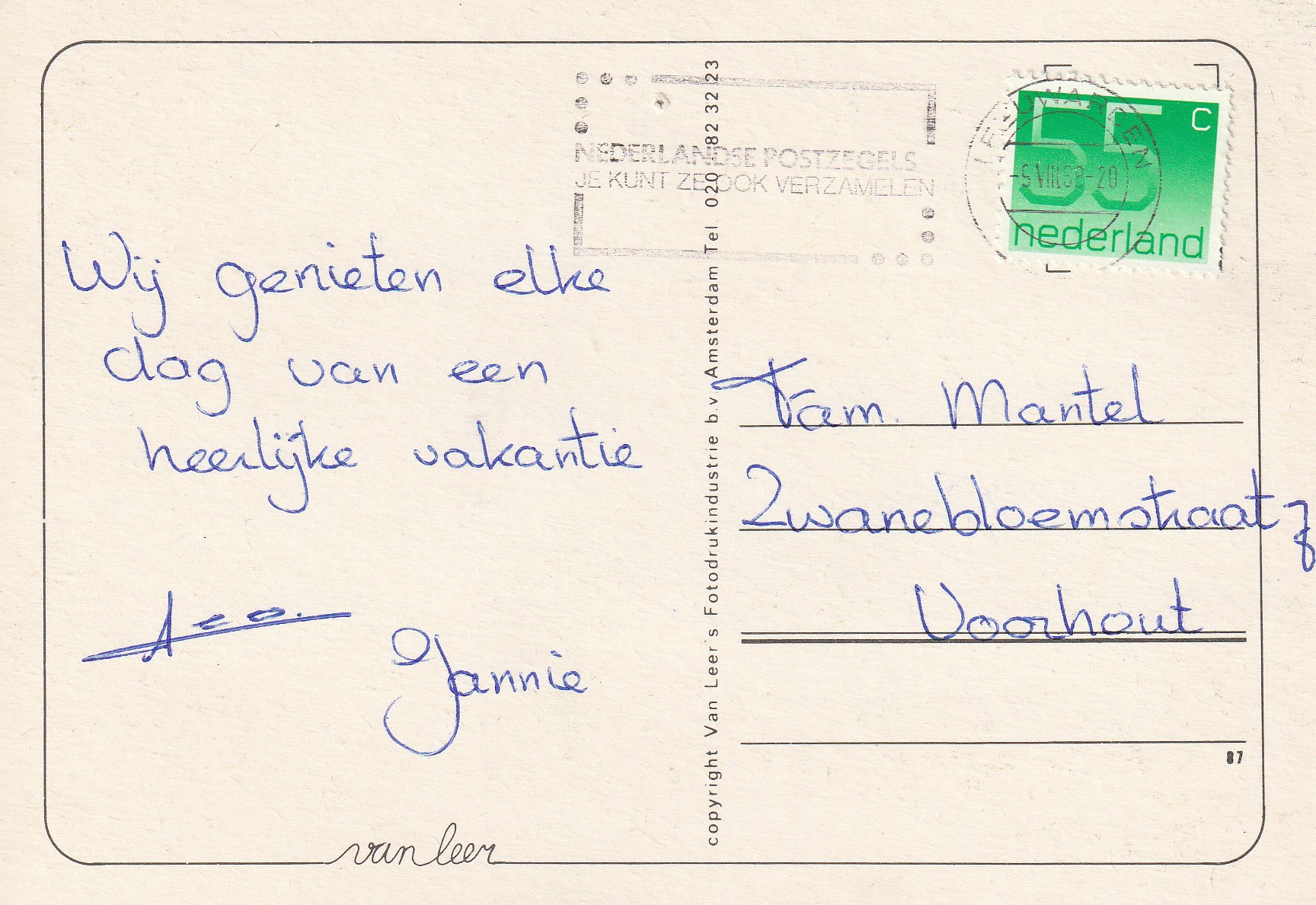 | Aan: | G. Mantel, Zwanebloemstraat, Voorhout |
