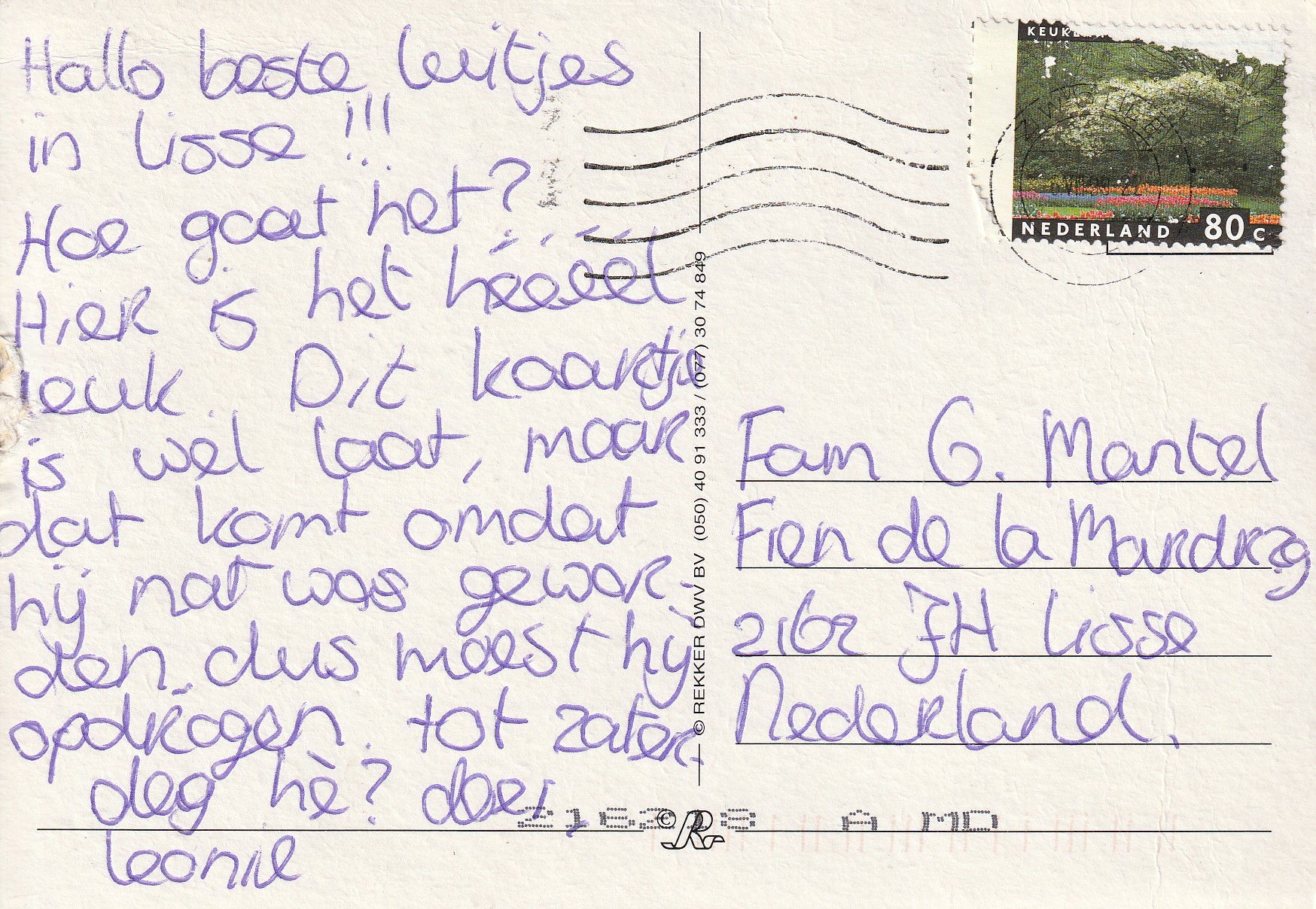 | Aan: | G. Mantel, Fien de la Mardreef, Lisse |