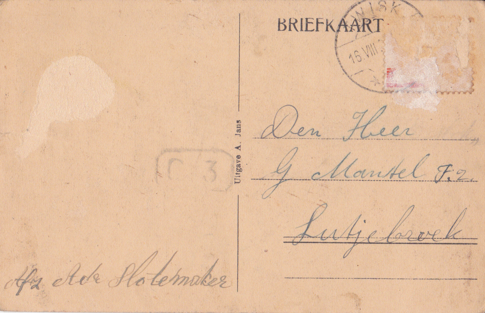 | Aan: | G. Mantel, P.J.Jongstraat, Lutjebroek |